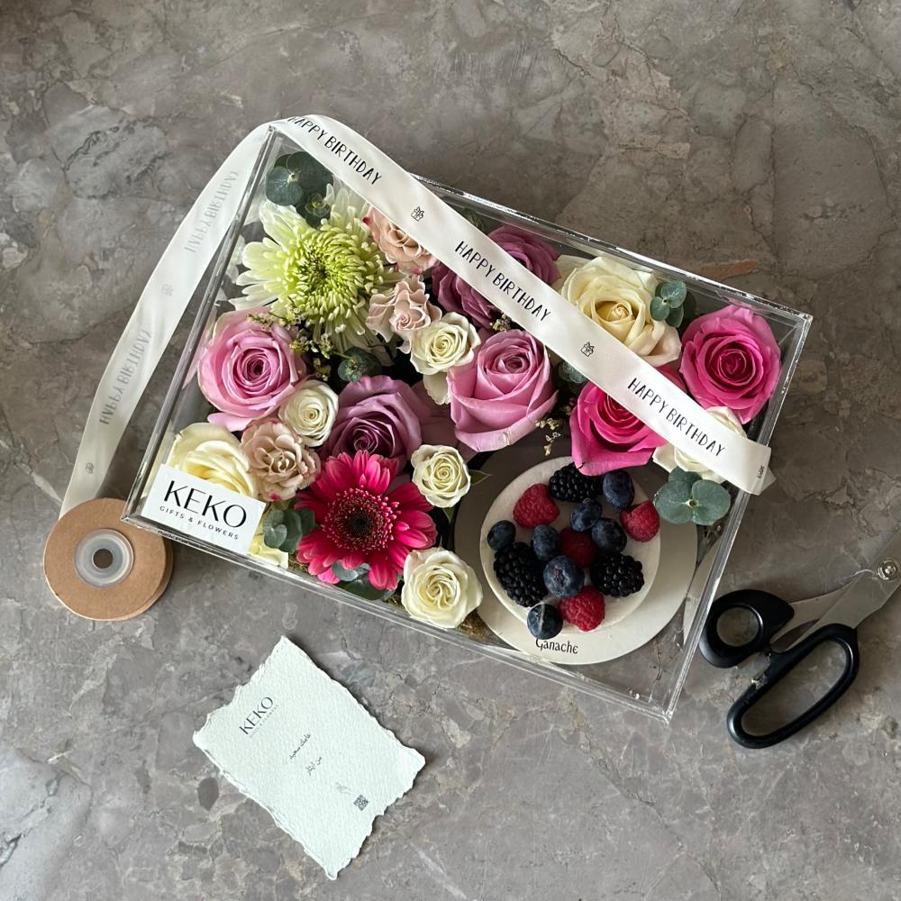 كيكة التوت من جاناش مع تنسيق ورد ببوكس شفاف أنيق